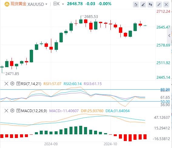 周二亚盘,黄金交投于2648.78附近。由于中国的刺激措施未能缓解金融市场的刺激作用,美元扩大涨势,金价在周一触及2666美元的日高点后回落。上周末,数据显示,中国经济面临通货紧缩压力,有可能使其无法实现5%的国内生产总值(GDP)目标。对此,中国财政部长兰佛宣布,政府将继续提供刺激措施,支持房地产市场并补充国有银行资本以提振经济。
