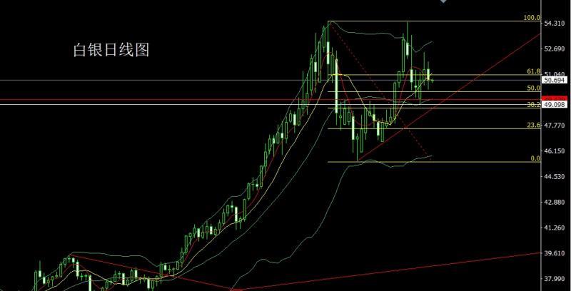 白银市场昨日开盘在51.367的位置后行情先拉升给出51.88的位置后行情强势回落,日线最低给到了50.066的位置后区间震荡,日线最终收线在了50.644的位置后,日线以一根上下影线等长的中阴线收线,而这样的形态收尾后,下方37.8的多和38.8的多跟进在42持有,今日51.3空止损51.5,目标看50.7和50.3和50.