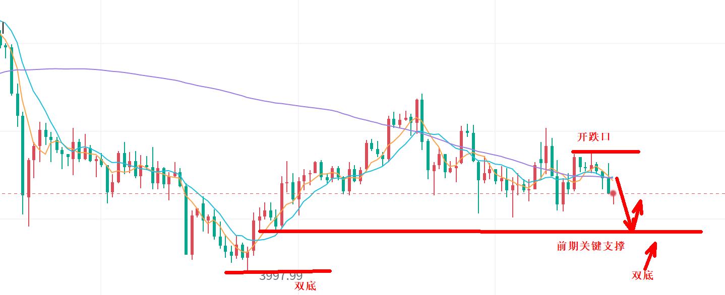 3,下方分水岭4040,按照节奏来说,早间下跌关注这两个分水岭。