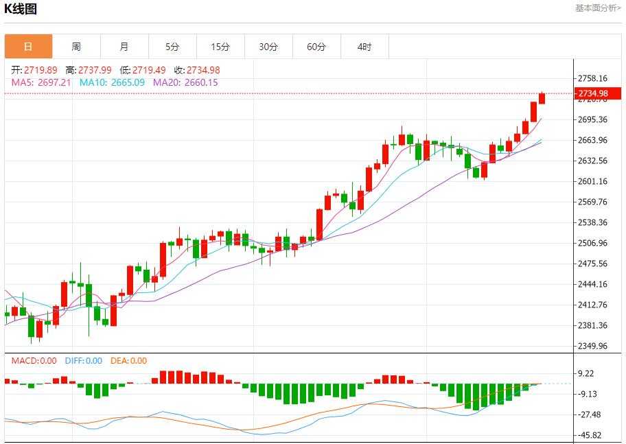现货黄金:截止北京时间20:23,现货黄金上涨,现报2735.00,涨幅0.47%。纽市盘前,金价提供了更多积极的交易,强化了在今天剩余时间内继续主导多头趋势的预期,等待测试2745.00美元水平作为下一个目标,提醒您在超越前一水平后,下一站到达2765.00美元。