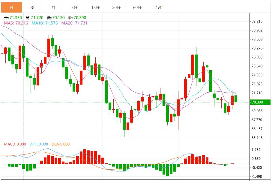 原油市场:截止北京时间20:23,美油下跌,现报70.380,跌幅1.85%。纽市盘前,原油价格在72.15美元面临坚实的阻力,显示出一些看跌倾向,这促使人们在即将到来的交易中保持谨慎,因为突破71.45美元将推动价格进一步下跌,并在任何新的上涨尝试之前测试70.58美元。
