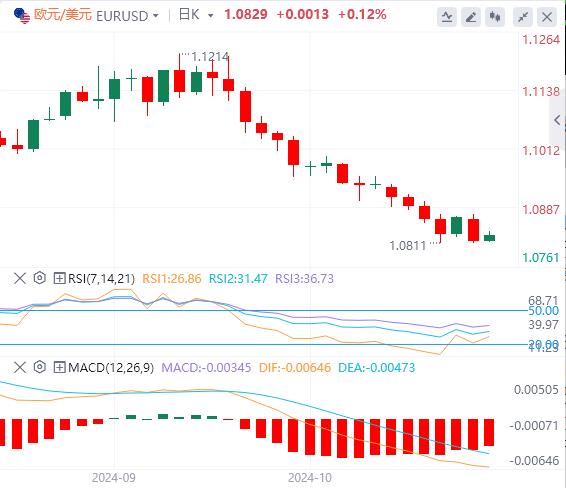 欧元/美元跌至1.0800,周一下跌0.5%,创下8月初以来的最低单日收盘价。该货币对发现很难出现反弹,周二欧洲早盘交易于1.0820附近。欧洲央行行长拉加德将于格林威治标准时间14:30参加与彭博社记者FrancineLacqua的对话。当天晚些时候,她将在华盛顿特区举行的国际货币基金组织(IMF)和世界银行集团(WBG)2024年年会期间出席关于跨境支付未来的小组讨论。