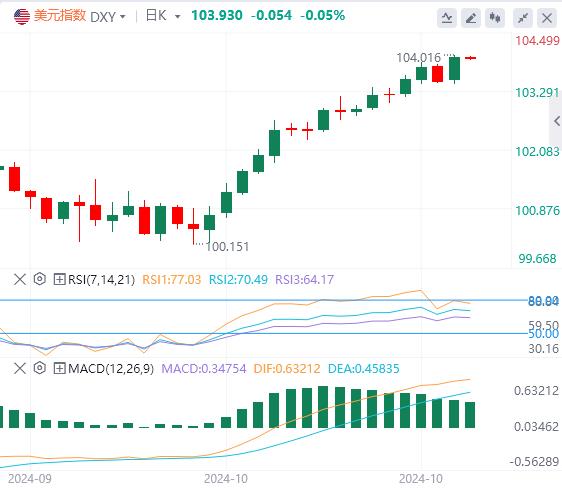 周一,美元指数一度冲上104关口上方,但未能站稳此处,美元报价103.93。