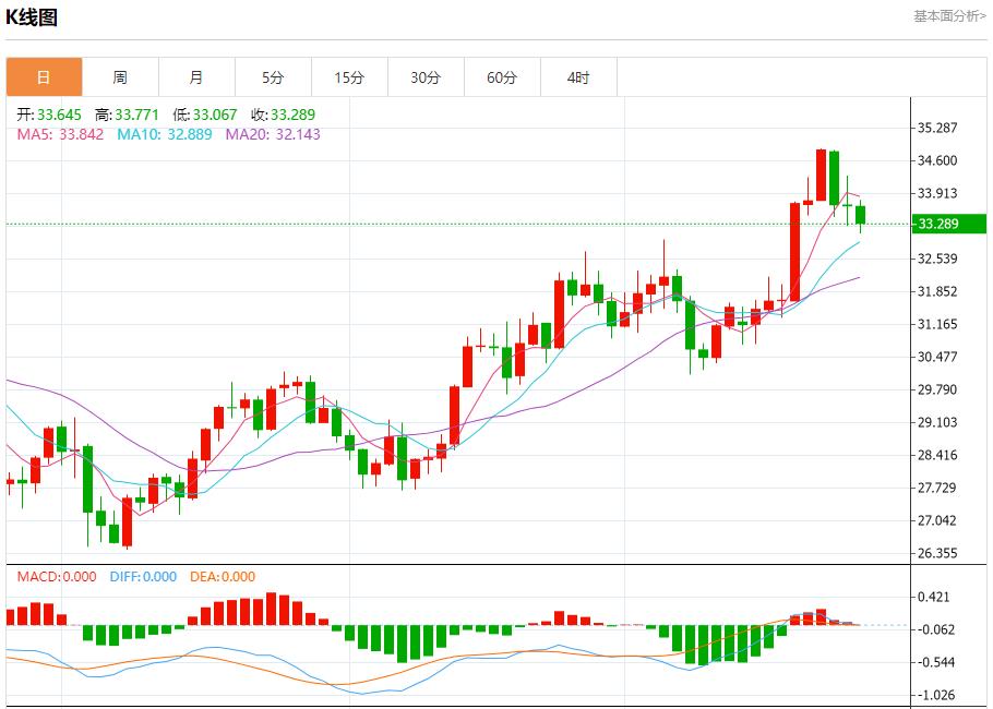 现货白银:截止北京时间20:23,现货白银下跌,现报33.278,跌幅1.12%。纽市盘前,白银价格恢复其负面交易,以接近我们第一个等待的目标33.04美元,并且似乎有可能超过这一水平并实现其他负面目标32.50美元,以保持熊市趋势在当天剩余时间内有效和活跃,提醒您熊市波的持续取决于33.70美元以下的价格稳定性。
