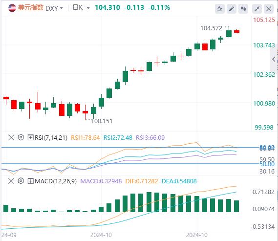 周三,美元指数延续涨势,收涨0.33%,报104.41。截至目前,美元报价104.31.
