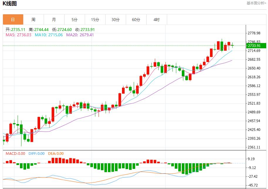现货黄金:截止北京时间20:23,现货黄金下跌,现报2733.21,跌幅0.48%。纽市盘前,受当前随机利空的影响,黄金价格现在交易不利,这支持了恢复今天预期的修正熊市趋势的机会,其目标是从突破2722.00美元开始,为走向2700.00美元开辟道路。