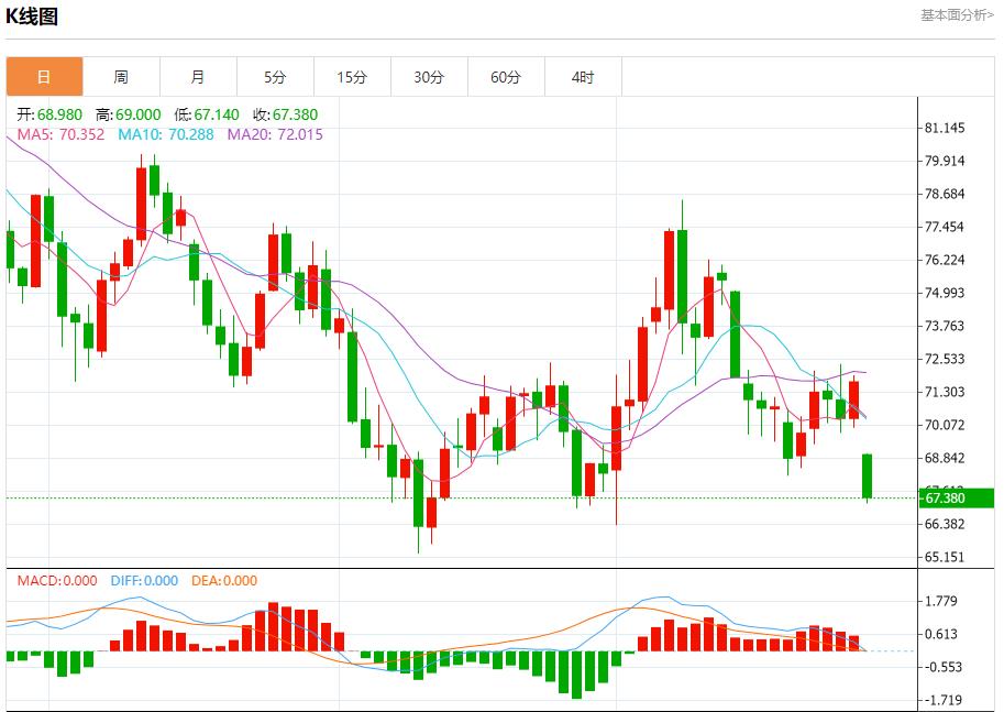 ①中东紧张局势的缓解为全球市场带来了一丝宽慰。在以色列对伊朗的报复性袭击中,石油和核设施未受波及,导致全球股市周一上涨,原油价格下跌。以色列的克制反应增强了外界对中东局势降温的希望,这将使基本面因素再次主导价格走向。美、布两油日内均大跌6%,分别报67.03美元/桶和70.98美元/桶。