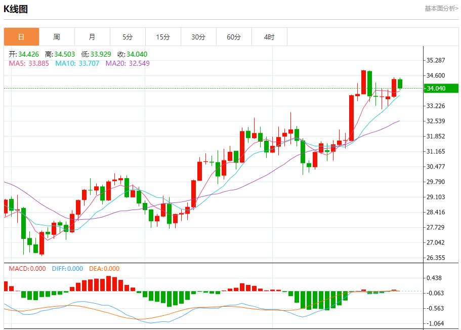 现货白银xm217.com:截止北京时间20:23,现货白银下跌,现报34.030,跌幅1.11%。纽市盘前,受随机利空的影响,白银价格现在显示出一些轻微的看跌倾向,只要价格高于33.70美元,我们今天的看涨观点将仍然有效,等待恢复目标为34.854的积极交易,作为下一站。