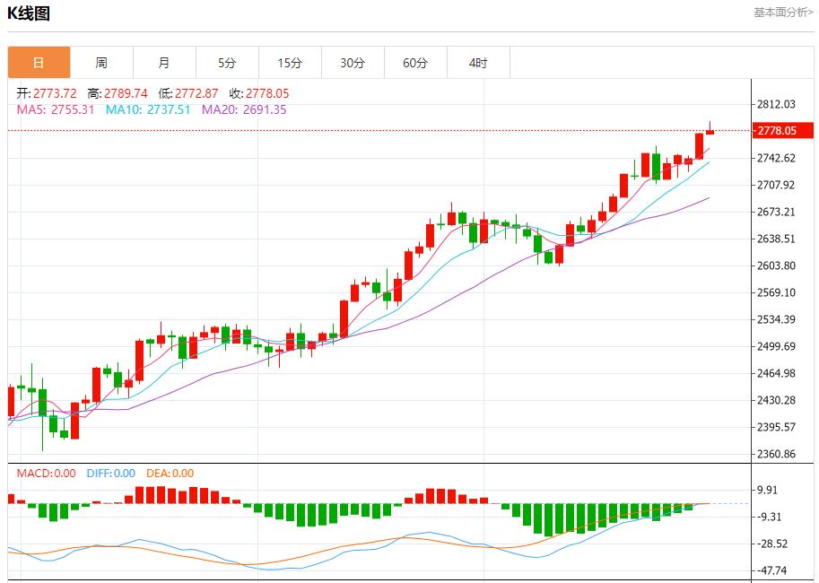 现货黄金:截止北京时间20:23,现货黄金上涨,现报2777.94,涨幅0.13%。纽市盘前,金价触及2785.00美元的第一个积极目标,并在该处找到坚实的阻力,提醒您突破该水平将延续牛市,达到2800.00美元,作为下一个主要目标,而价格需要获得积极的动力,以帮助继续朝着新的目标上涨。