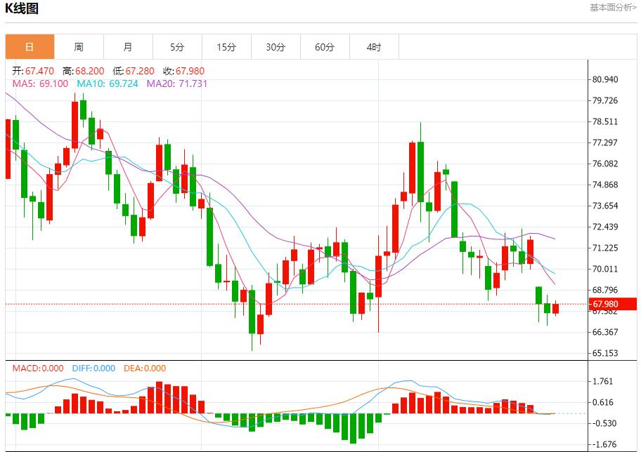 原油市场:截止北京时间20:23,美油上涨,现报68.270,涨幅1.56%。纽市盘前,原油价格积极交易,以测试关键阻力68.65美元,正如我们今天早上提到的,价格需要保持在这一水平以下,以保持今天的熊市趋势有效和活跃,因为突破这一水平将导致价格在盘中转向上涨,而预期熊市的主要目标位于67.00美元,并延伸至65.50美元。