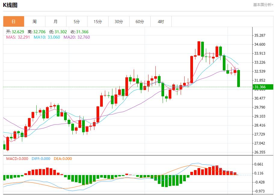 现货白银:截止北京时间21:20,现货白银下跌,现报31.401,跌幅3.77%。纽市盘前,白银价格大幅下跌,超过了我们等待的目标31.95美元,接近第二个目标31.25美元,但它试图弥补这些损失,以积极交易,并向潜在的测试32.50美元水平前进,注意到在这个水平以下持有将在未来几个交易日保持熊市趋势,主要向31.25美元前进。
