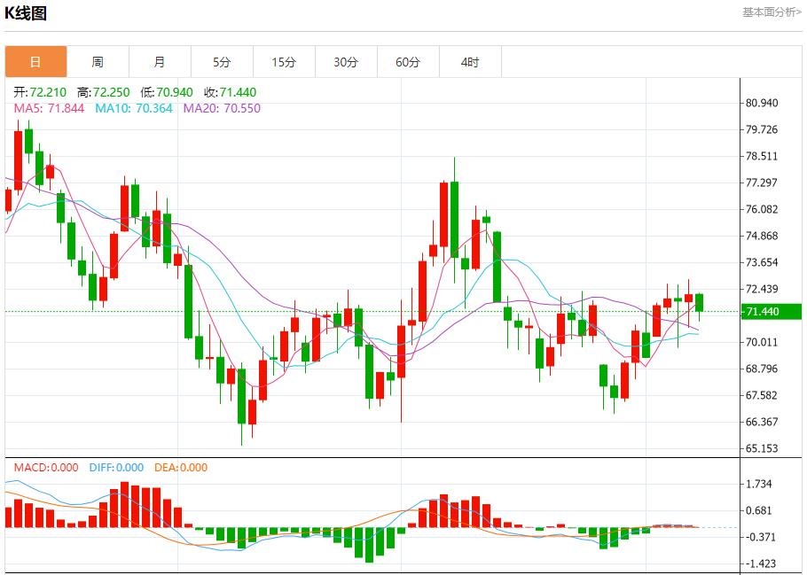 原油市场:截止北京时间20:12,美油下跌,现报71.440,跌幅1.22%。纽市盘前,原油价格面临新的负面压力,可能会测试关键支撑70.58美元,这使得在即将到来的交易中出现看跌倾向,注意到当达到上述水平时监控价格是重要的,因为突破该水平将推动价格遭受更多损失,在近期基础上延伸至68.64美元,而在该水平上方巩固将导致价格恢复牛市,并再次测试72.15美元。