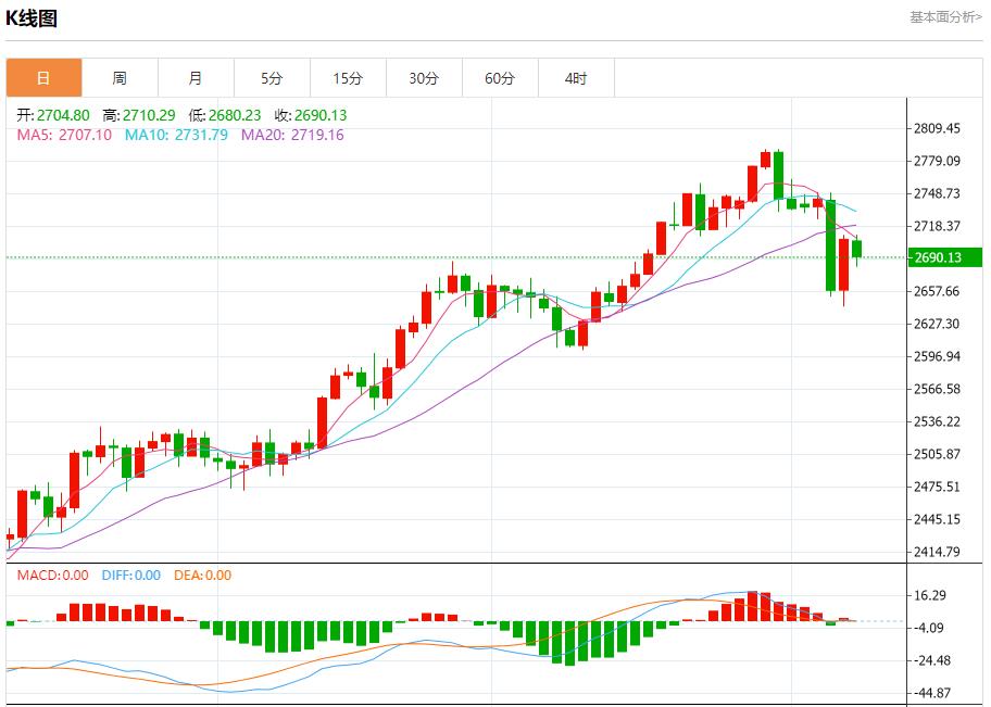 现货黄金:截止北京时间20:12,现货黄金下跌,现报2689.68,跌幅0.61%。纽市盘前,黄金价格显示出更多的看跌倾向,接近2675.00美元水平,等待超过这一水平,以确认打开通往下一个负面目标2647.70美元的道路。