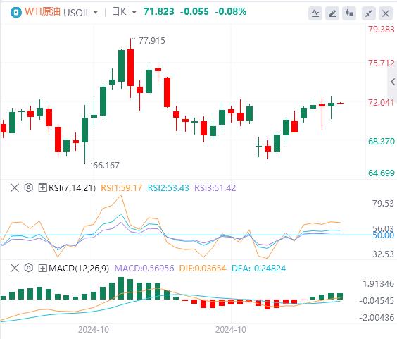 周五亚盘,原油交投71.82附近。特朗普当选引发了大量抛售,推动油价在早盘交易中下跌逾2美元/桶,与此同时,美元大幅上涨,目前达到自2022年9月以来的最高水平。美元走强使以美元计价的商品(如石油)对其他货币持有者而言更为昂贵,从而压低了价格。