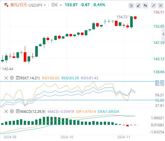 美元/日元积蓄看涨势头,并攀升至7月下旬以来的最高水平154.40上方。该货币对周四修正走低,交投于154.00附近。