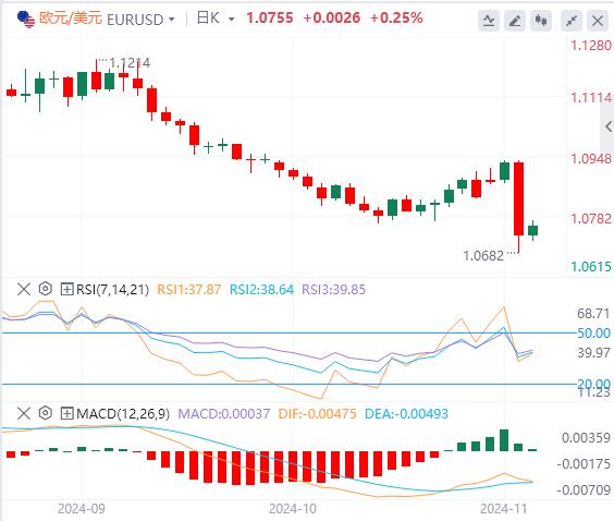 11月7日,周四欧市盘中,美元指数徘徊在104.31附近。美元周三的表现优于其主要竞争对手,因为市场对唐纳德·特朗普赢得美国总统大选做出反应。周四早些时候,美元指数修正走低并在105.00下方波动,因为投资者正在为美联储(Fed)的货币政策决定做准备。此外,英格兰银行(BoE)将发布其货币政策报告并宣布利率。