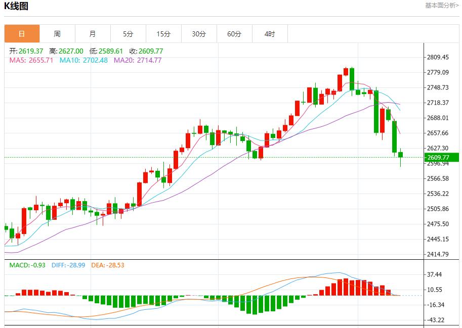 现货黄金:截止北京时间21:20,现货黄金下跌,现报2608.38,跌幅0.42%。纽市盘前,黄金价格恢复其负交易,以成功实现我们在2604.00美元的扩展目标,注意到价格正在攻击看涨趋势线,以暗示在日内和短期基础上实现更多下跌,这促使根据2597.00美元的支撑线监控价格,因为确认突破将推动价格向2555.00美元区域反弹,作为下一个负站。