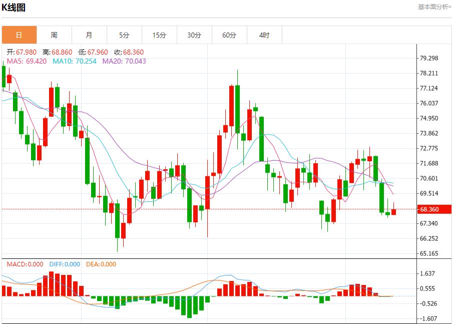 原油市场:截止北京时间21:20,美油上涨,现报68.360,涨幅0.35%。纽市盘前,原油价格自上午以来一直在窄幅波动,稳定在68.64美元以下,因此,今天的预期熊市趋势没有改变,这取决于价格稳定在上述水平以下,提醒您我们正在等待访问67.00美元,然后是65.50美元,作为下一个主要目标。