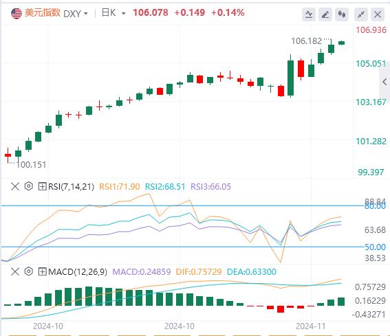 - 【XM Group】:美元指数盘整于106上方,市场关注美国PPI数据2024-11-14
