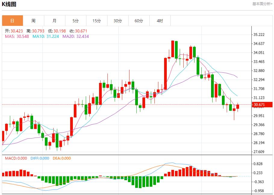 现货白银:截止北京时间21:20,现货白银上涨,现报30.661,涨幅0.79%。纽市盘前,白银价格在试图离开30.63美元水平时表现出轻微的看跌倾向,这是由现在出现在四小时时间框架中的随机负面因素推动的,等待访问29.63美元作为下一个主要目标,注意到预期下跌的持续需要持有低于30.63美元,因为突破它将导致价格恢复并实现新的收益,达到31.63美元。