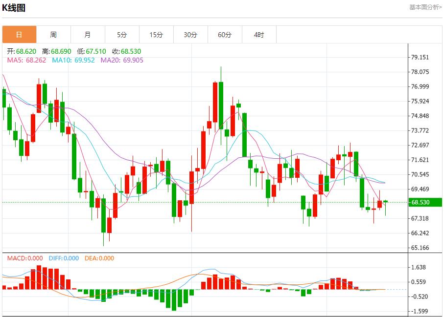 原油市场:截止北京时间21:20,美油下跌,现报68.550,跌幅0.22%。纽市盘前,原油价格恢复其负面交易,远离68.64美元的水平,并加强了在未来几个交易日继续主导看跌趋势的预期,实现我们下一个从xm217.com67.00美元开始并延伸至65.50美元的负面目标的道路是开放的。