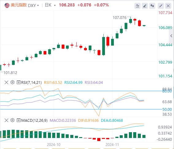 周一,美元指数震荡下跌,盘中一度触及106.12,截至目前,美元报价106.28。