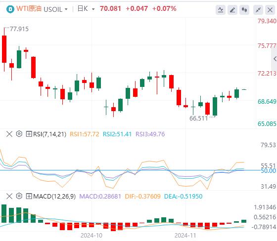 11月22日,北京时间周五亚市早盘,美元指数徘徊在107.05附近。周四,因市场预期美联储明年降息次数将减少,美元指数延续昨日涨势,最终收涨0.40%,报107.06。基准的10年期美债收益率收报4.4250%;对货币政策更敏感的两年期美债收益率收报4.3570%。乌克兰空军表示,俄罗斯对乌克兰发射了一枚洲际弹道导弹,俄乌局势再度升级,现货黄金连续第四个交易日上涨,最终收涨0.73%,报2669.37美元/盎司。现货白银几乎平收,最终收跌0.19%,报30.78美元/盎司。因市场担忧俄乌冲突升级影响原油供应,WTI原油最终收涨1.58%,报70.08美元/桶;布伦特原油收涨1.66%,报74.25美元/桶。
