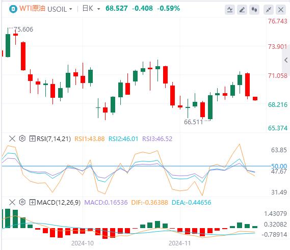 周二亚盘,原油交投68.52附近。援引未透露姓名的美国高级官员的话说,有报道称以色列和黎巴嫩已就结束以色列-真主党冲突的协议条款达成协议,此后WTI价格小幅走低。然而,不断升级的地缘政治紧张局势,尤其是俄罗斯在乌克兰的行动可能会限制WTI的下行空间。