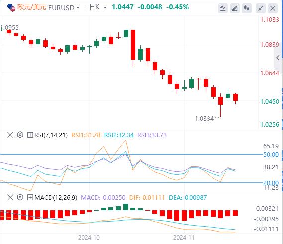 美元指数:截止发稿,美元指数徘徊在107.35附近。交易员等待美国国内生产总值(GDP)和个人消费支出(PCE)通胀数据提供指引。黄金价格一度下探2605美元,随后回升至2611美元维持疲软,美国总统拜登和法国总统马克龙传将宣布以色列与真主党停火。技术面上,如果美元指数回升至107.10–107.30的阻力位上方,它将向下一个阻力位108.70–108.90移动。