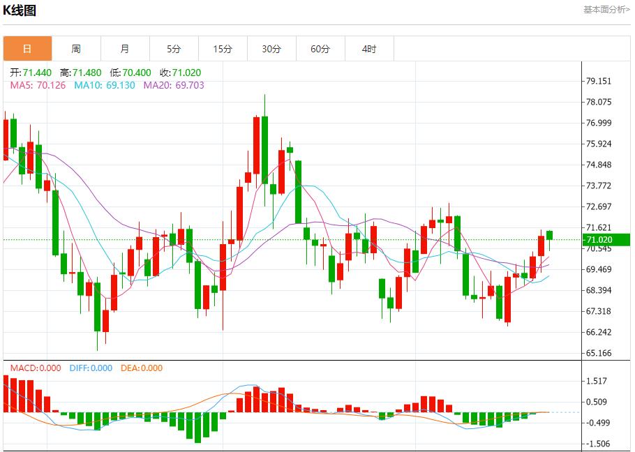 原油市场:截止北京时间21:15,美油下跌,现报71.01,跌幅0.32%。纽市盘前,原油价格测试了70.58美元水平,并在此水平上保持稳定,直到现在,以保持今天的看涨趋势,其目标是从测试72.15美元水平开始,提醒您突破70.58美元将使价格承受额外的负面压力,并向69.70美元和68.65美元水平前进,作为主要的负面站。