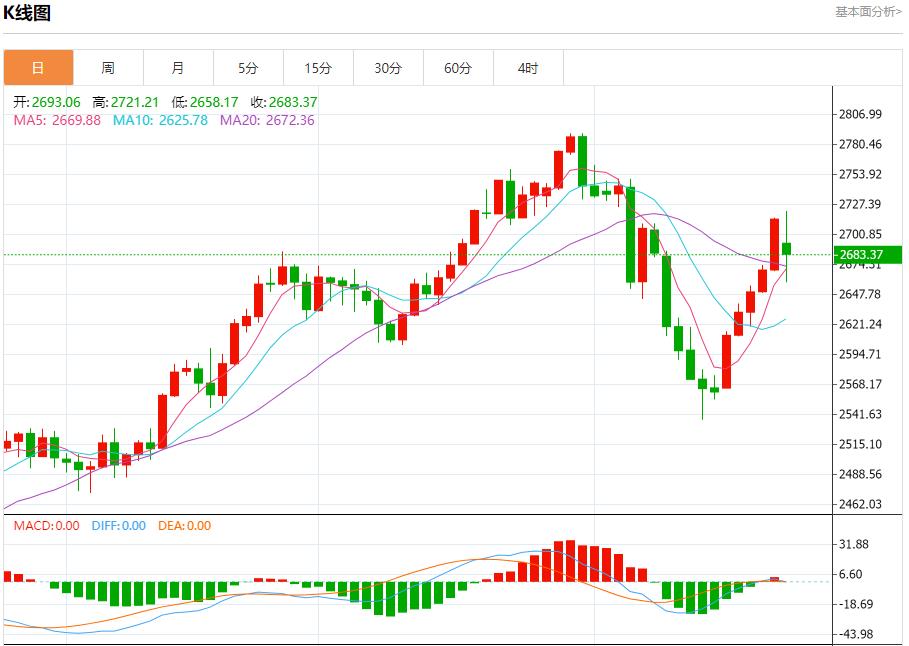 现货黄金:截止北京时间21:15,现货黄金下跌,现报2683.52,跌幅1.14%。纽市盘前,黄金价格显示出更多的看跌倾向,以测试EMA50,EMA50继续从下方支撑价格,注意到随机指标明显摆脱了其负面势头,等待恢复其下一个主要目标达到2790.00美元的主要牛市。