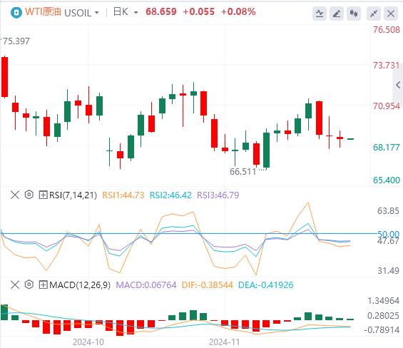 周四亚盘,原油交投68.65附近。援引未透露姓名的美国高级官员的话说,有报道称以色列和黎巴嫩已就结束以色列-真主党冲突的协议条款达成协议,此后WTI价格小幅走低。然而,不断升级的地缘政治紧张局势,尤其是俄罗斯在乌克兰的行动可能会限制WTI的下行空间。