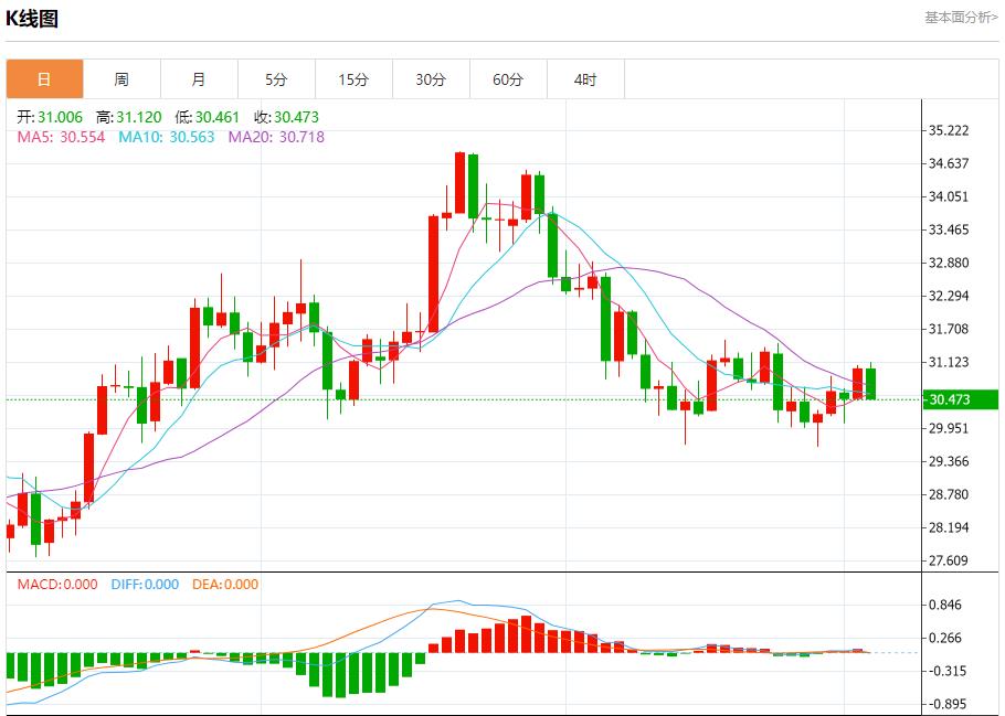 现货白银:截止北京时间21:13,现货白银下跌,现报30.47,跌幅1.73%。纽市盘前,自上午以来,白银价格显示出紧张的交易,这使得看涨趋势情景有效,因为今天没有任何变化,其下一个目标位于31.63美元,提醒您保持在30.63美元以上是重要的,以保证预期上涨的持续。