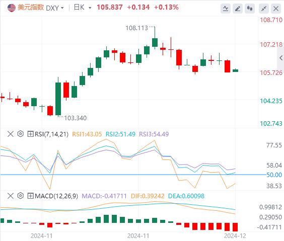 周四,美元指数震荡下行,并失守106,截至目前,美元指数报价105.83。