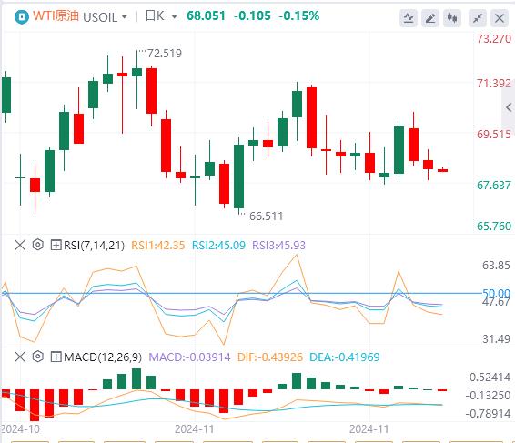 周五亚盘,原油交投68.05附近。投资者正在权衡石油输出国组织及其盟友(OPEC)再度推迟增产的影响,以及原油市场的供需前景。以沙特阿拉伯和俄罗斯为首的八个OPEC成员国将在2025年3月底之前保持每天220万桶的自愿减产。