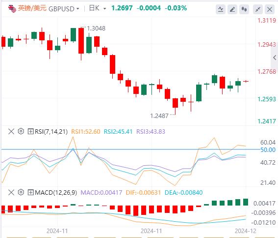 美元指数:截止发稿,美元指数徘徊在106.31附近。11月服务业采购经理人指数(PMI)令人沮丧,所有成分均低于其预期结果。ADP私人就业人数估计并不令人惊讶,而且与估计相比略有偏差,没有改变现状。在美国交易时段晚些时候,美联储(Fed)主席杰罗姆·鲍威尔(JeromePowell)将在纽约举行的纽约时报DealBook峰会上发表讲话。技术面上,从好的方面来看,106.52(4月16日高点)在本周未能收于该阻力位上方后,仍是第一个值得关注的阻力位。如果美元多头收复该水平,107.00(整数位)和107.35(2023年10月3日高点)将回到重新测试的目标。