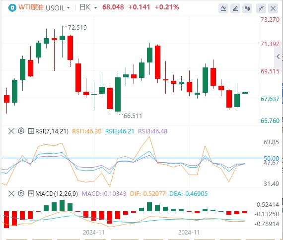 周二亚盘,原油交投68.04附近。上周末,叙利亚总统巴沙尔-阿萨德及其家人逃往莫斯科并获得政治庇护,结束了长达50年的残暴独裁统治。叙利亚领导人政权的倒台可能导致涉及地区国家的冲突,提振WTI油价。