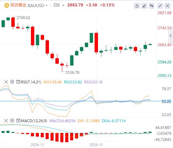 周二亚盘,黄金交投于2663.79附近。主要受到中国央行在暂停6个月后重新购买黄金的推动,加之市场对美联储下周降息的预期显着增强,进一步提振看涨情绪,黄金价格周一(12月9日)创下两周新高,涨幅超过1%。道明证券(TDSecurities)大宗商品策略主管BartMelek表示:“最重要的因素是中国人民银行宣布重新开始购买黄金的消息。市场对其它央行可能跟进并重启破纪录的购买持乐观态度。”