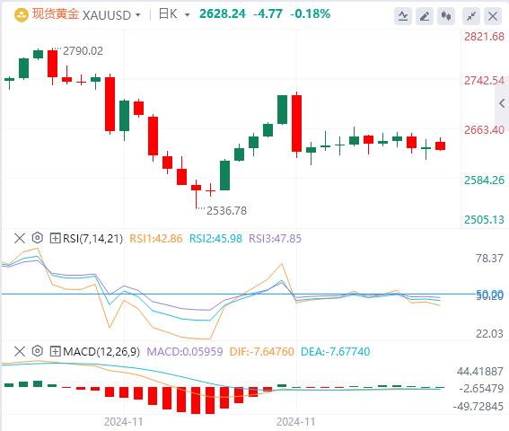 周一亚盘,黄金交投于2628.24附近。美国非农就业报告显示,11月就业岗位增加227,000个,高于预期的200,000个。然而,疲软的私人就业增长描绘了一幅更为谨慎的劳动力市场图景。虽然交易员仍认为美联储在12月会议上降息25个基点的可能性很大,但主席杰罗姆鲍威尔的乐观经济前景已经冷却了对激进货币宽松的希望。这种说法对黄金整周的表现造成了压力。