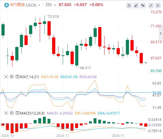 周一亚盘,原油交投67.02附近。OPEC+联盟宣布将其深度减产延长至2026年,将先前计划的增产推迟到2025年4月。虽然此举突显了该联盟对稳定价格的承诺,但它未能抵消不断增长的盈余预测。分析师预测,由于全球需求疲软,尤其是来自中国的需求,打压了市场情绪,明年石油库存将增加。前景仍然看跌,布伦特原油期货上周下跌超过2.5%。中东的地缘政治紧张局势为市场增加了一层复杂性。以色列和真主党之间脆弱的停火有崩溃的风险xm217.com,引发了人们对更广泛的供应中断的担忧。然而,这些风险在很大程度上被非欧佩克+参与者(尤其是美国)增产的预期所掩盖,美国的石油钻井平台数量八周来首次增加。