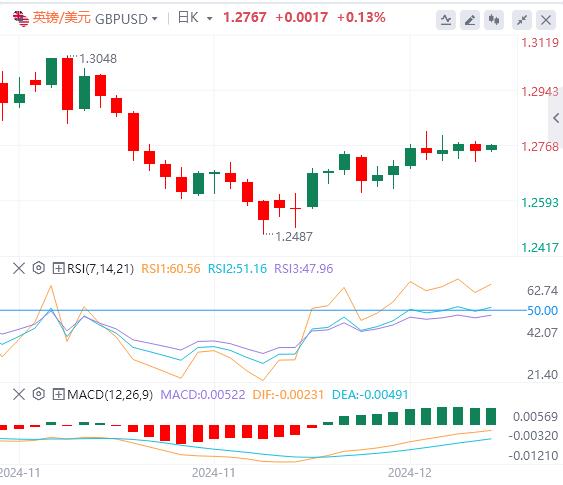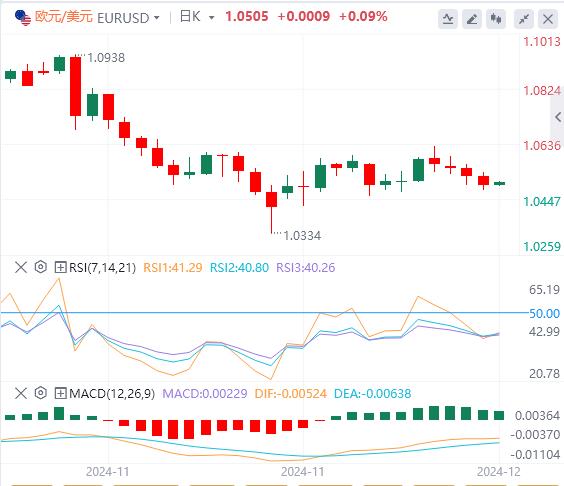 美元指数:截止发稿,美元指数徘徊在106.54附近。在美国消费者价格指数(CPI)大致符合预期后,美元(USD)周三保持小幅上涨。月度整体通胀率为0.3%,而月度核心通胀指标也上涨了0.3%,这并不奇怪。数据公布后,美元立即回落,对12月降息的押注增加。技术面上,如果美元指数收于106.50水平上方,它将向下一个阻力位107.10–107.30移动。