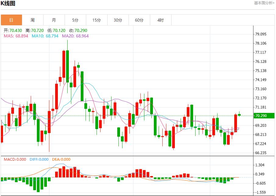 原油市场:截止北京时间21:26,美油下跌,现报70.280,跌幅0.03%。纽市盘前,原油价格现在正在测试70.58美元水平,等待突破该水平以确认日内和短期基础上多头趋势统治的延续,提醒您下一个目标位于72.15美元。