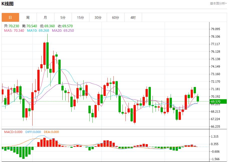 原油市场:截止北京时间21:20,美油下跌,现报69.560,跌幅1.02%。纽市盘前,原油价格明显突破70.58美元水平,并试图保持在该水平以下,以停止最近暗示的积极情景,并在今天剩余时间内转向下跌,主要目标是68.65美元区域。