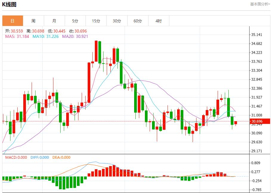 现货白银:截止北京时间21:16,现货白银上涨,现报30.701,涨幅0.57%。纽市盘前,白银价格正在测试关键阻力30.63美元,这促使人们在即将到来的交易中保持谨慎,因为价格需要保持在这一水平以下,以保持今天的熊市趋势,因为突破这一水平是构建牛市的关键,目标最初是31.63美元,而预期熊市的下一个负目标位于29.63美元。