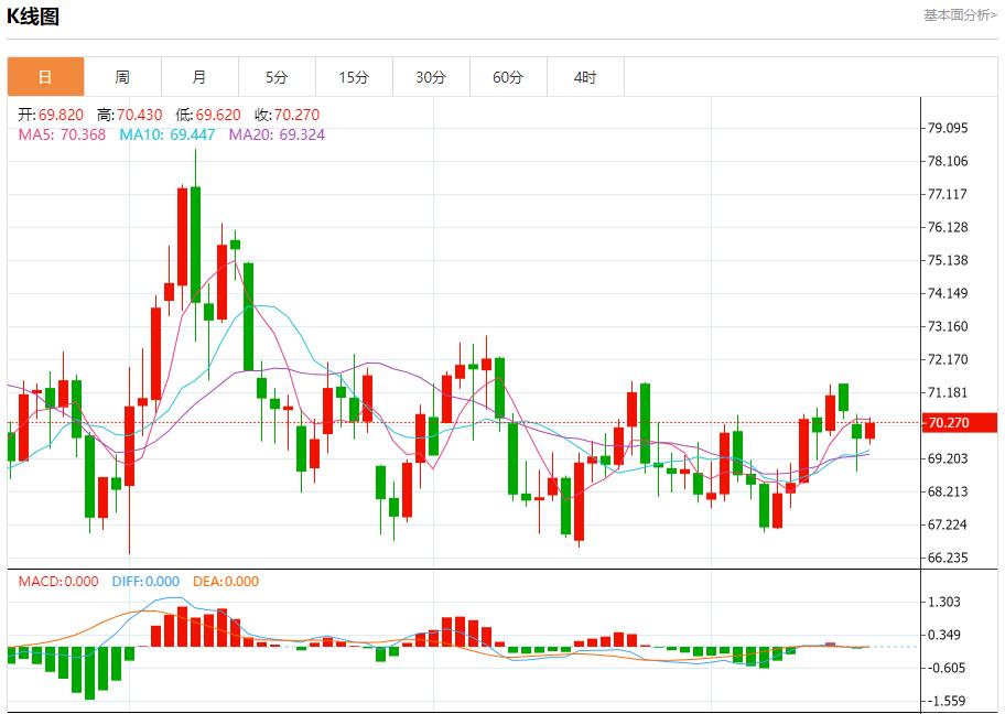 原油市场:截止北京时间21:20,美油上涨,现报70.290,涨幅0.95%。纽市盘前,原油价格交易明显积极,试图突破70.58美元水平,这促使人们在即将到来的交易中保持谨慎,因为价格需要保持在这一水平以下,以保持今天的看跌趋势,目标是68.64美元作为第一站,注意到确认突破70.58美元将推动价格实现更多收益,并在近期向72.15美元迈进。