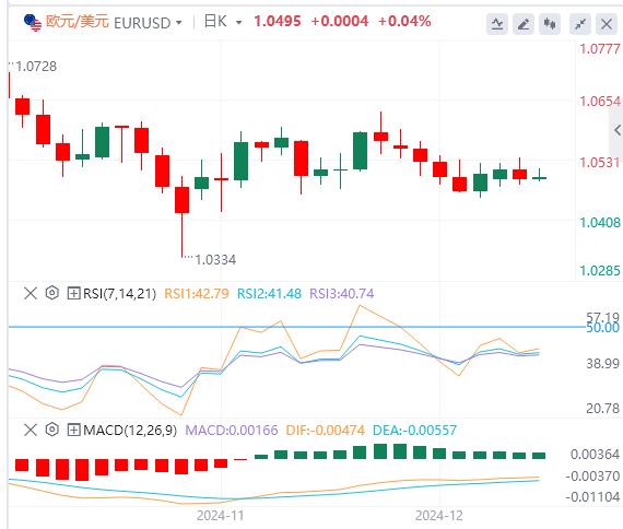 欧元/美元在周二小幅收跌后,在1.0500略上方延续横盘震荡。