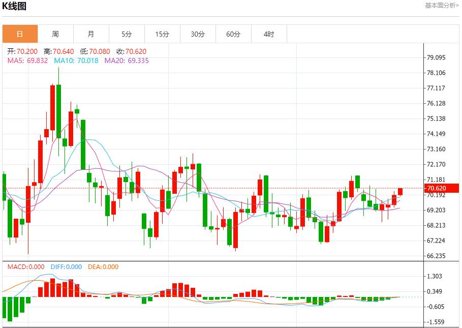 原油市场:截止北京时间21:20,美油上涨,现报70.600,涨幅0.73%。
