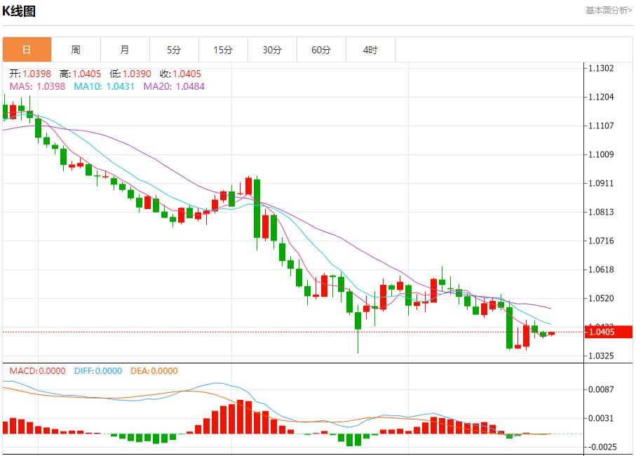欧元/美元:截止北京时间21:20,欧元/美元上涨,现报1.0405,涨幅0.13%。
