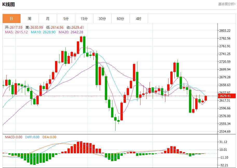 现货黄金:截止北京时间21:20,现货黄金上涨,现报2629.59,涨幅0.49%。