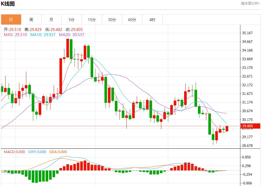 现货白银:截止北京时间21:20,现货白银上涨,现报29.787,涨幅0.63%。